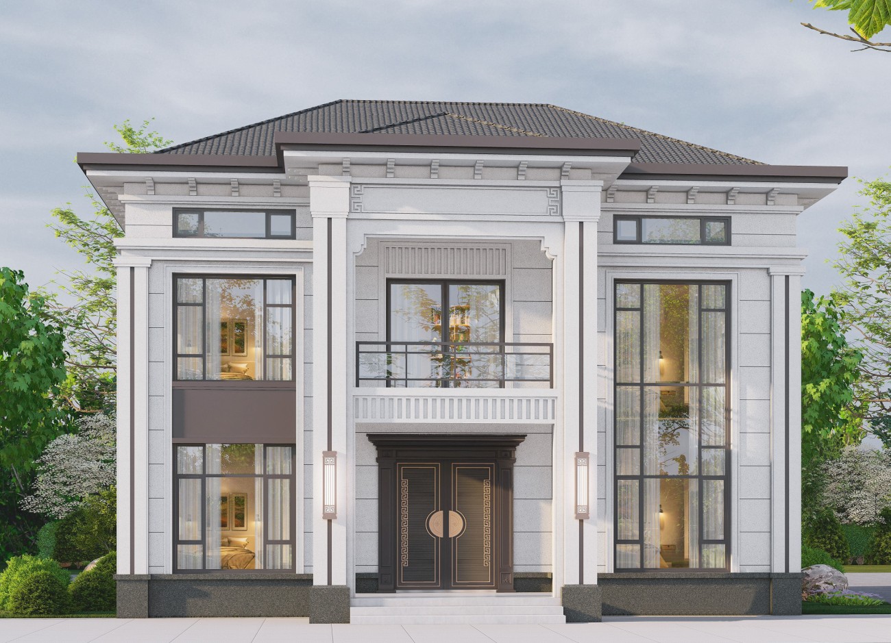 鄂尔多斯12 新中式两层半(12.8x13.06米)-【易设计】